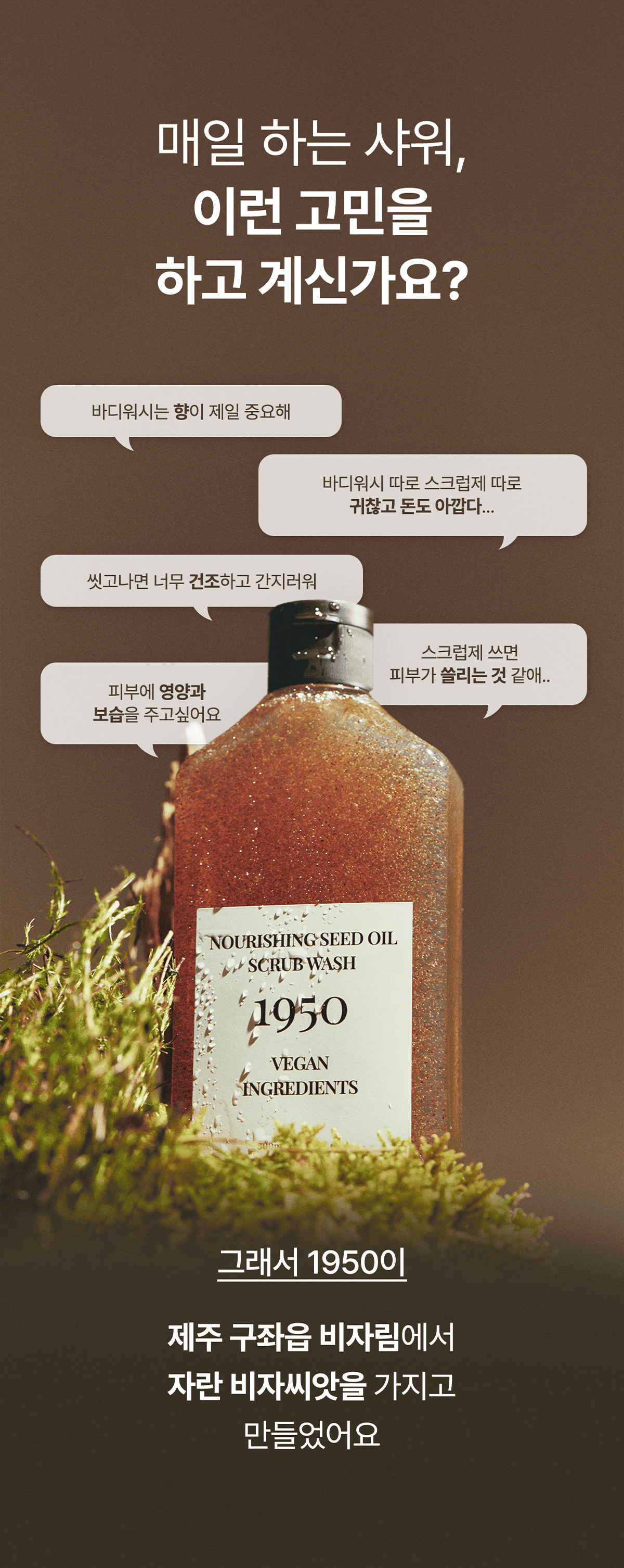 • 1950 제주 너리싱 씨드오일 스크럽워시 300ml 고보습 고영양 각질 케어